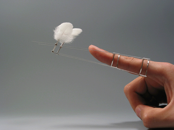 Yoon creates genius little kinetic sculptures, some of which are jewelry that you can wear and amuse yourself and others with.