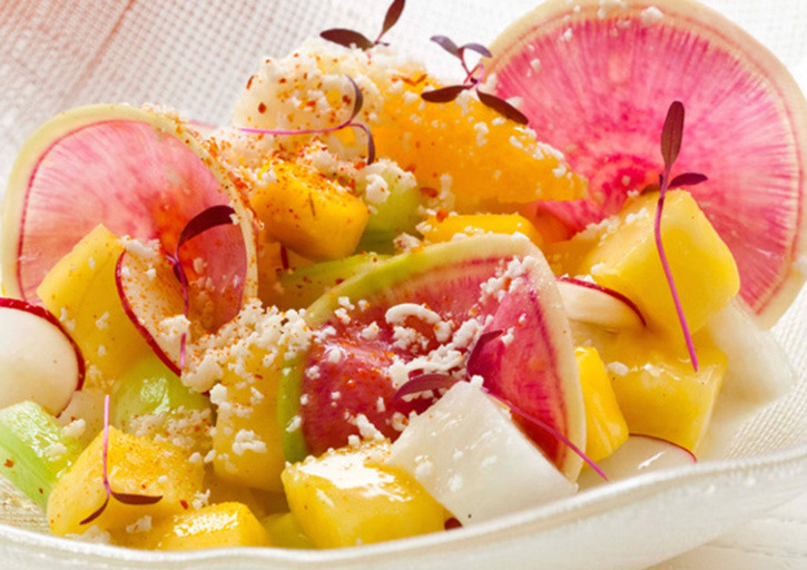 If not, "Gaspacho estilo Morelia", a salad of seasonal fruit, jicama root, cucumbers, queso fresco and chile pequín, from the historic city of Morelia, is sure to please her.