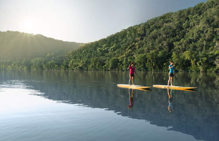 - Image: Courtesy of Lake Austin Spa Resort. Paddle Boarding on the Lake. Austin, Texas.