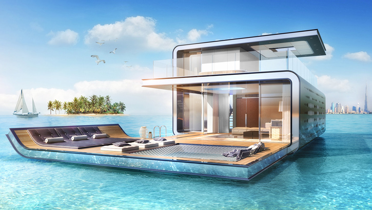 This is underwater living at its best. These floating villas are essentially boats without propulsion. Rather, they have their own stationary piece of real estate, a designated patch of ocean in the Arabian Gulf.