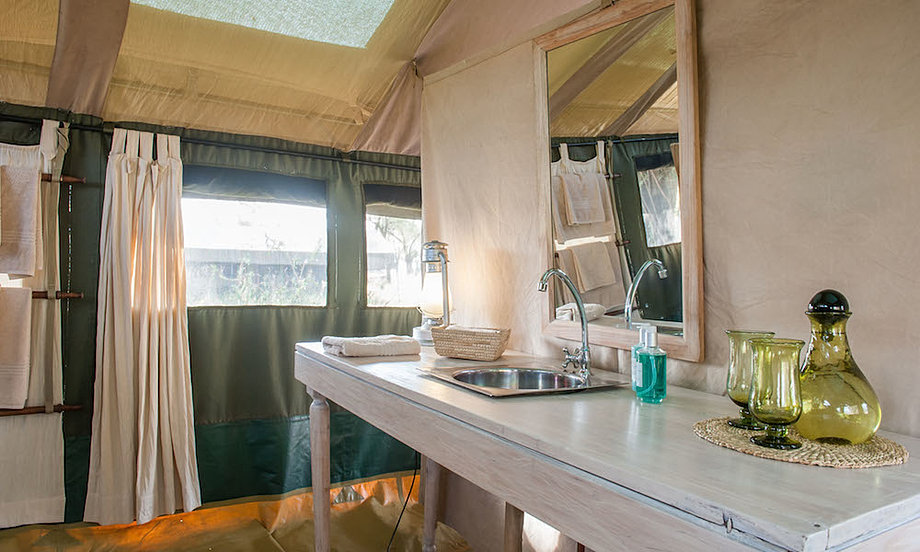 - Photo: Courtesy of Serengeti Safari Camp. Serengeti Safari Camp tent sink.