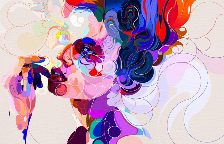 With bright colors that swirl in circular patterns, Sati’s illustrations a reminiscent of pop artist Peter Max.