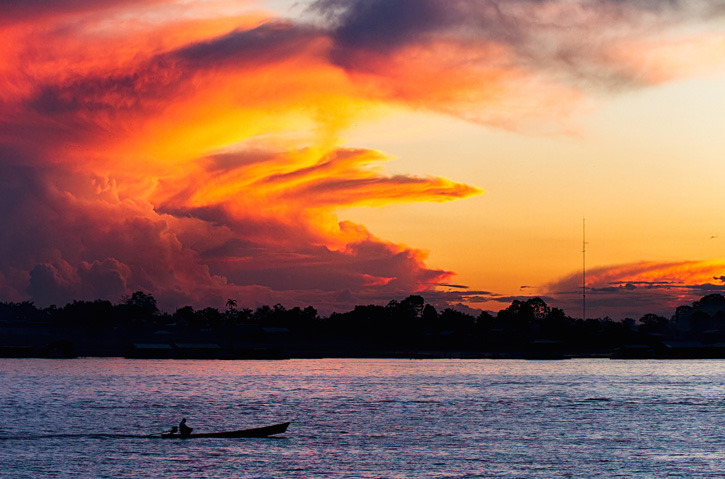 - Photo: by Pedro Szekely. Sunset on the Amazon.