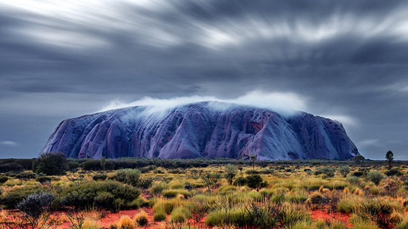 Also known as Ayers Rock, the 600 year old rock formation sits within the Uluru-Kata Tjuta National Park, a desert with extreme temperature ranges, from 25°F to 114°F.