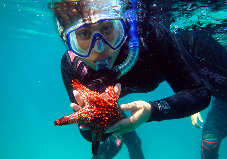 The waters here are teeming with echinoderms, such as sea stars and sea urchins. You’ll study them as you swim among oodles of sea lions swim .
