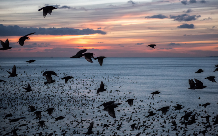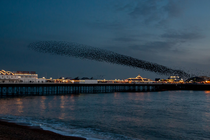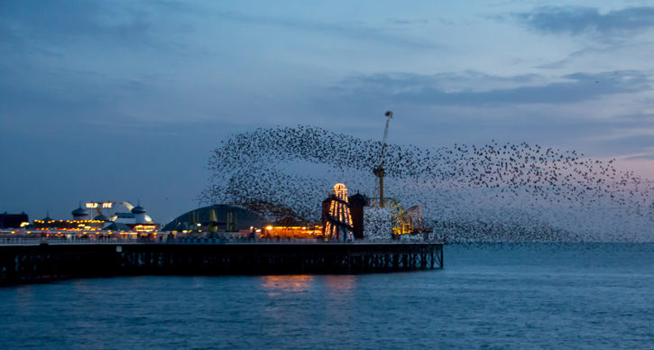 - Image: by James West. “Starling Murmurations at Sunset Over Brighton Pier.”
