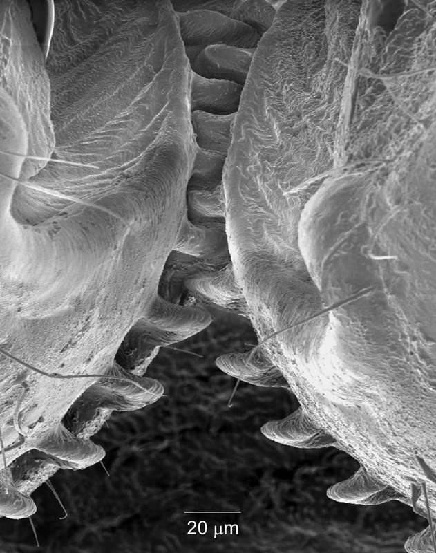 Image: by Malcolm Burrows. Electron microscope look at Issus legs.