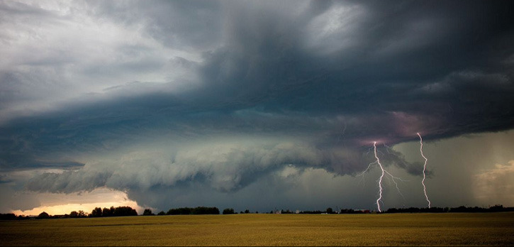 Based in Southwestern Ontario, Canada, Burlovich captures mesmerizing moments when a massive storm strikes the landscape. He watches the weather forecast, and then gets into his photographing position long before the storm actually hits.