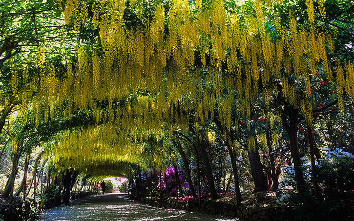 - Image: by ukgardenphotos. Laburnum Arch, Laburnum Pergola, in full bloom at Bodnant Gardens, Conwy, Wales, UK (1 of 15). Wales.