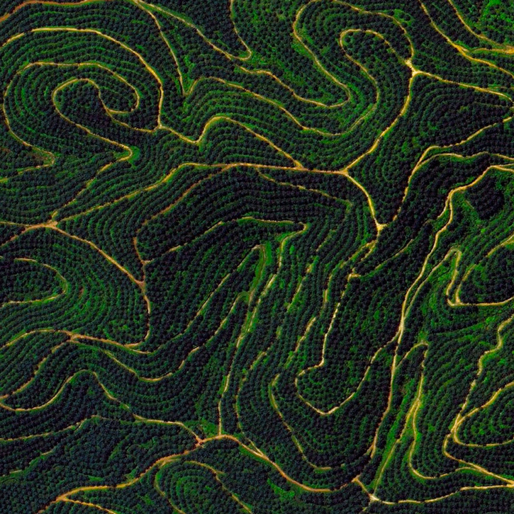 - Image: by Digital Globe. Curated by Benjamin Grant, of Daily Overview. “Palm Tree Plantation.” Kuala Lumpur, Malaysia.