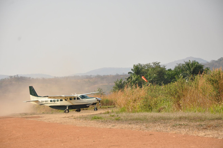- Photo: by Shira P. White. Plane landing at Mahale.