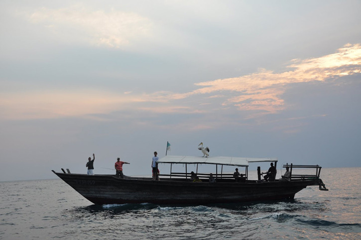 - Photo: by Shira P. White. Fishing on Lake Tanganyika. With Big Bird the pelican.
