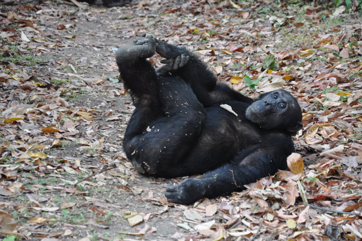- Photo: by Shira P. White. A chimpanzee ponders his day at Mahale.