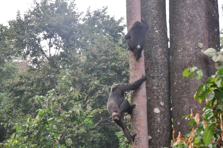 - Photo: by Shira P. White. Chimpanzees scrambling up to breakfast at Mahale.