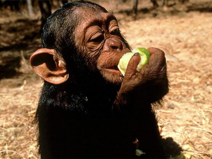 - Photo: Courtesy of Gherkins & Tomatoes. Chimpanzee eating a fruit.