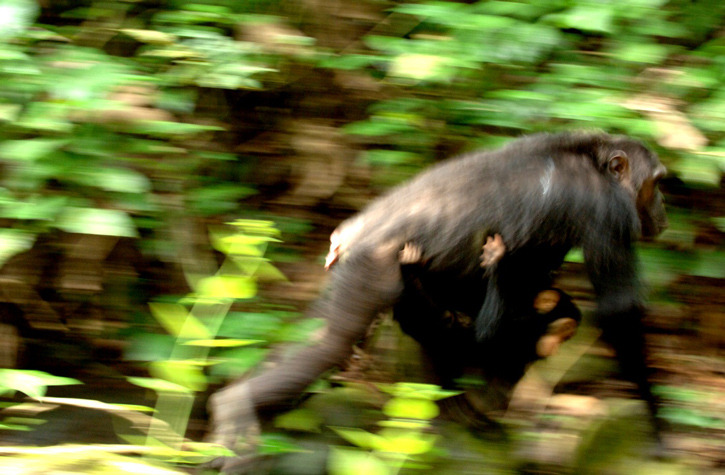 - Photo: Courtesy of Rainbow Tours. Chimps charging at Mahale.