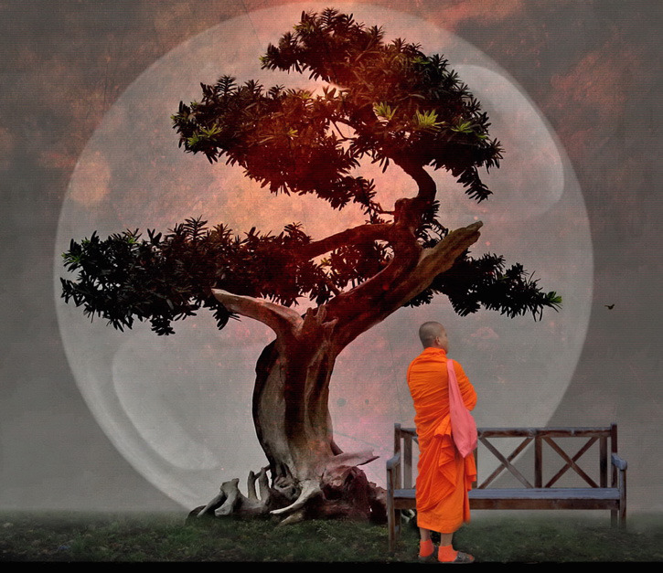 - Photo: by Hartwig Kopp-Delaney. Bonsai and Monk.