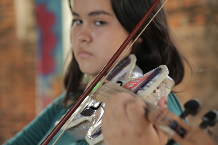- Image: Courtesy of Landfill Harmonic. Ada Playing her Recycled Violin.
